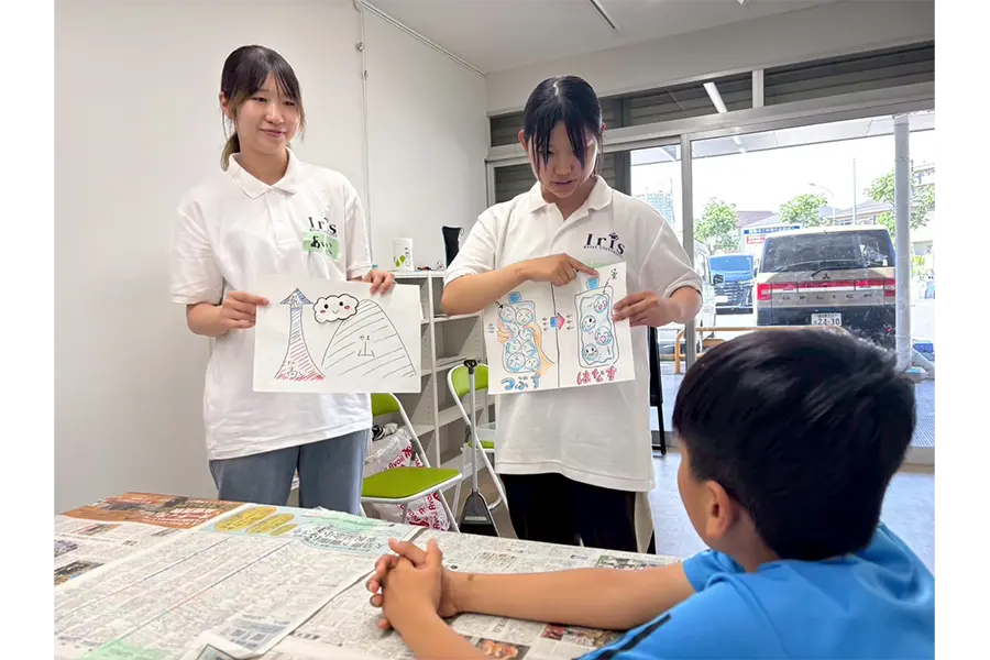 7月の企画を担当した教育学部2年の東條瑞姫と高橋愛子です。さっそくみなさんに質問です!「雲に触ってみたい」、「雲を近くで見たい」と考えたことはありませんか。子どもの頃、一度は思ったことがあるのではないでしょうか。7月の月企画は小学生にとって夏休み最初の企画になるので、私たちは“夢を叶えられる企画”、“夏を感じられる企画”にしたいと考えました。たくさん話しあった結果、「雲の実験」と「風鈴づくり」を実施することに決まりました。