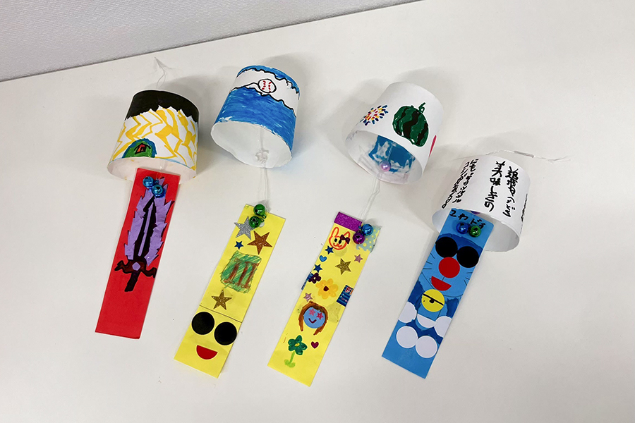 2つ目の企画は、夏を感じる『音』に着目して、風鈴づくりを行いました。風鈴づくりでは、風鈴の音そのものではなく『なぜ風鈴は作られてきたのか』を子どもたちに考えてもらいながら、それぞれの素敵な作品を作ってもらいました!