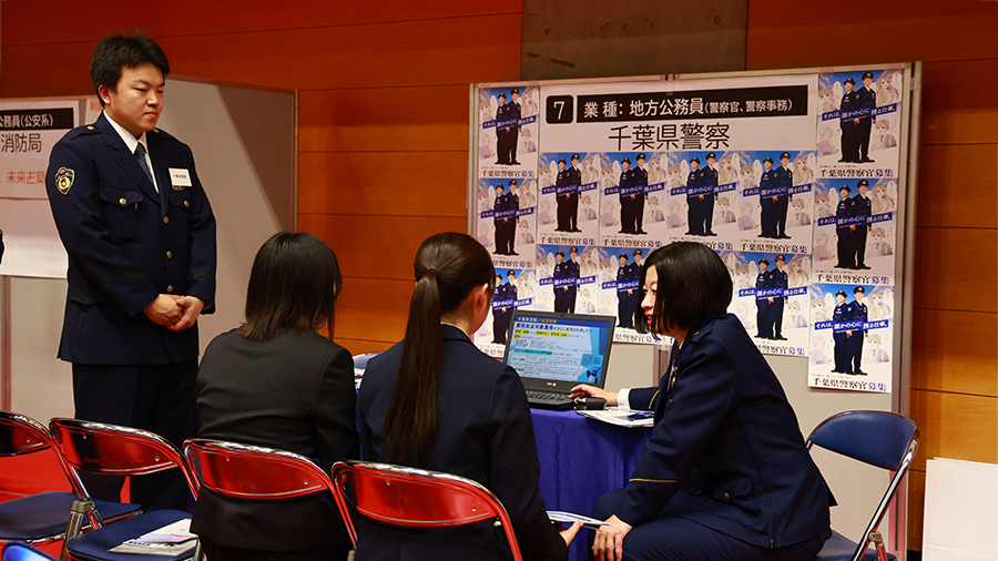 卒業生(左)が就職フェアに来てくれた千葉県警