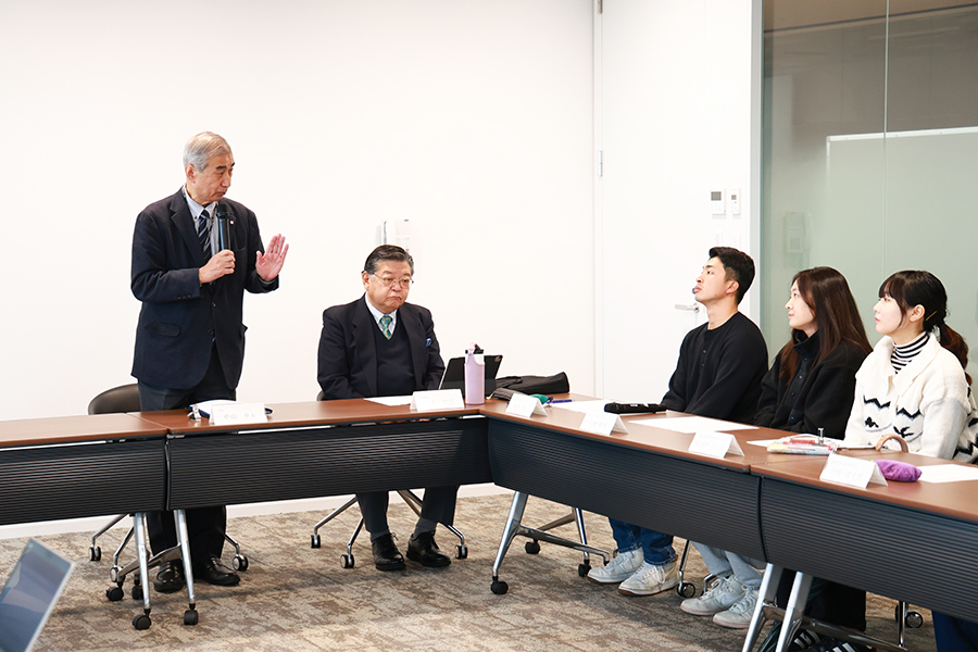 敬愛大学では、学生の皆さんがより充実したキャンパスライフを送れるよう、大学に対する意見を直接教職員に届ける「学生モニター会議」を毎年開催しています。11月25日(火)、各学部から選出された学生モニターと、中山学長をはじめとする教授陣、事務局の各部門長が一堂に会し、全体会および学部別の分科会を行いました。