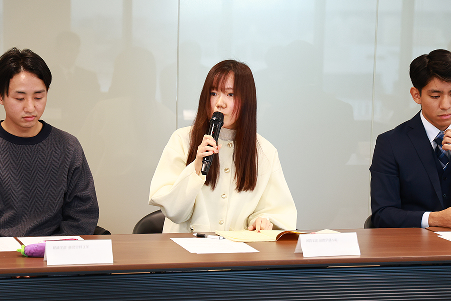 経済学部の学生からは、多くの学生が利用する教室において、出席登録時などに通信が不安定になり、正しく登録できているか不安を感じる場面があるという意見が寄せられました。大学では、利用状況を踏まえた再調査をしたうえで、通信環境の強化に向けた検討を進めていることが伝えられました。
