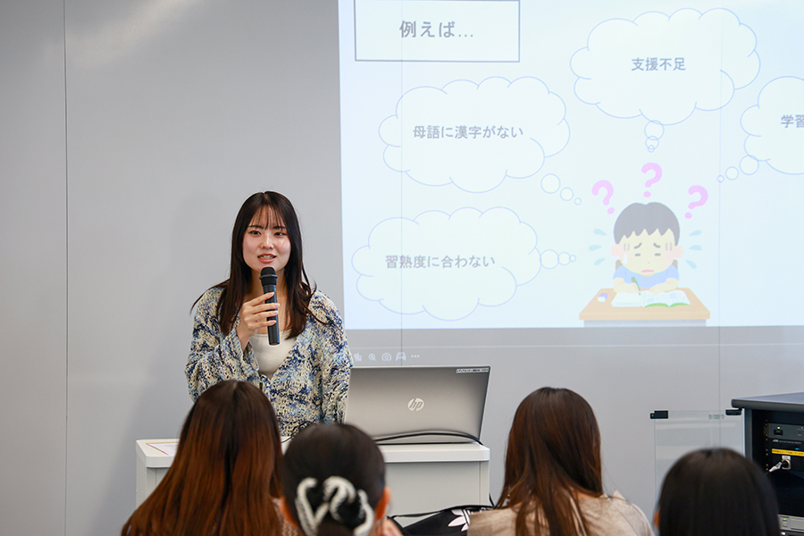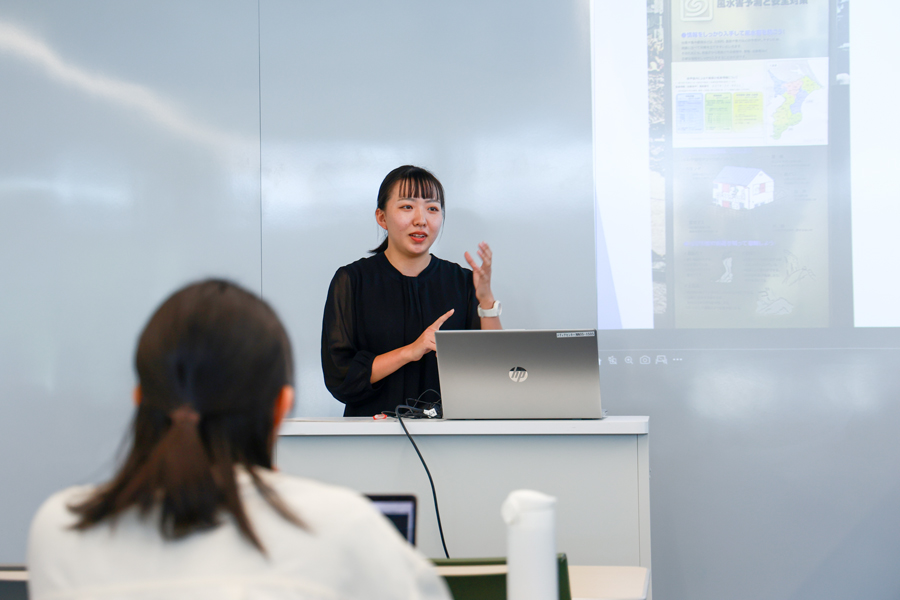 Jさんは防災教育について研究しています。先行研究では、災害の恐怖を強調しすぎると子どもたちが思考停止に陥り「防災嫌い」になってしまう一方、楽しさだけを追求すると肝心な学びが抜け落ちて「見せかけの防災」になってしまうことが指摘されています。そこで、Jさんは遊びと学びを両立した「あそぼうさい」に着目。既存の高価格な教材を簡略化し、予算の限られる教育現場でも簡単に導入できるよう調査と改善を進めています。