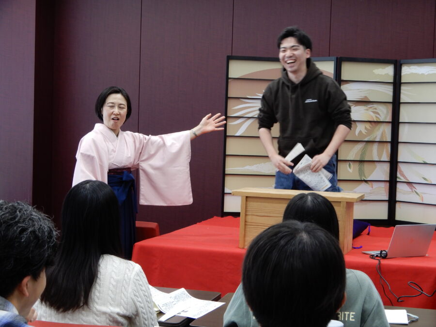 - 学生も実際に講談に挑戦し、声・表情・間の使い方を体験