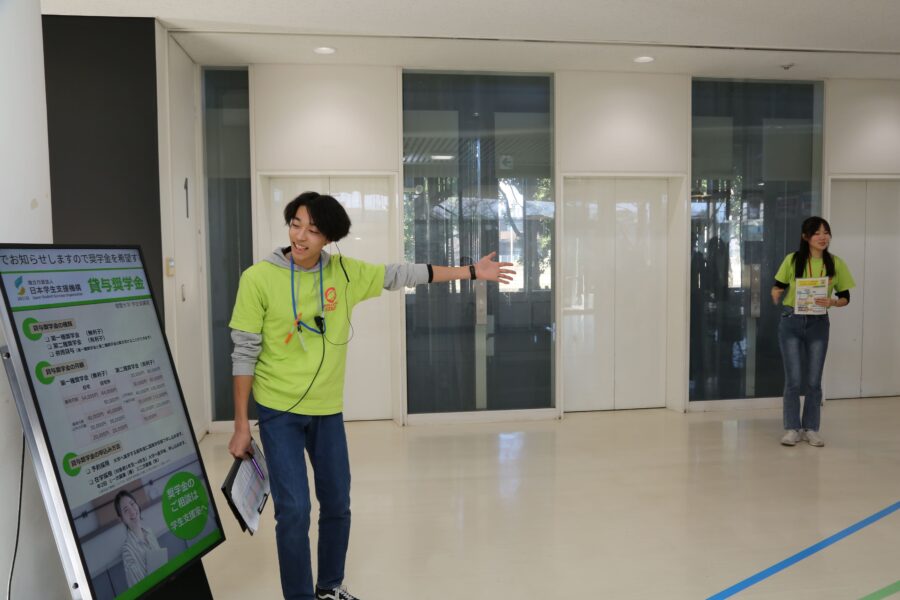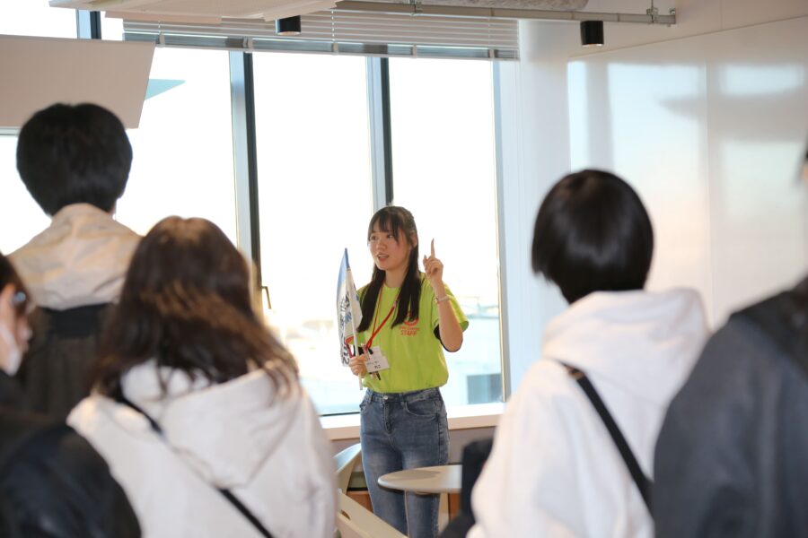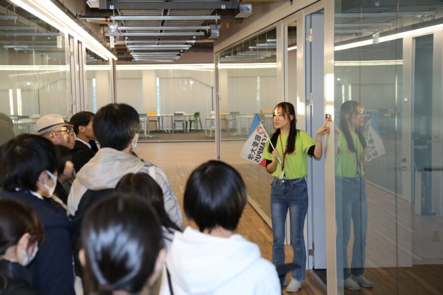 キャンパスツアーでは、学生チューターが普段使っている教室や施設をリアルなエピソードを交えて紹介。