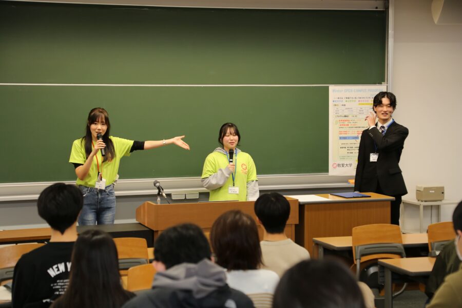 学生企画~学生主体の授業紹介~ 実際に敬愛大学の授業を受けている学生たちが、印象に残っている活動や授業のリアルを自分たちの言葉で発表します。