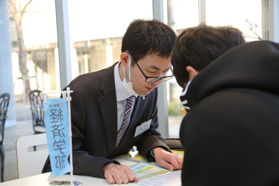 個別相談ブースでは、年明けの入試に向けた具体的な相談や、学部学科の詳細、教職課程や資格についてなど、