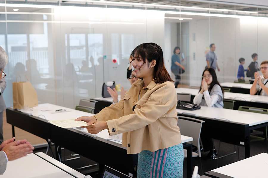 最優秀賞 国際学部1年 カイン・ウッイ・イーさん(市川日本語学院 出身)
