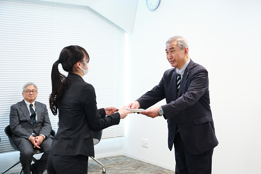 長戸路記念奨学金を受け取る経済学科3年生の菊地さん