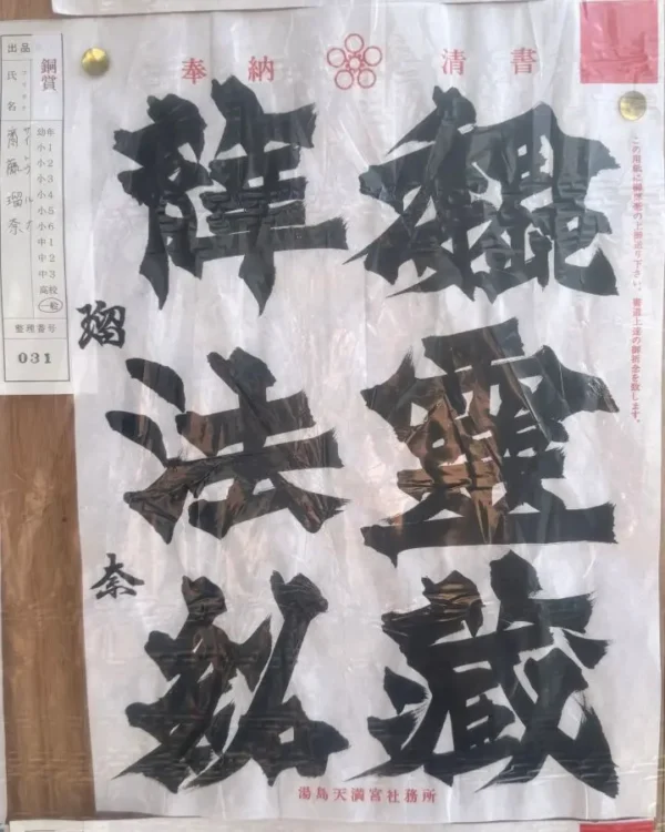 本学国際学部2年生 齋藤瑠奈さんが、東京都文京区の湯島天満宮で開催された「湯島天満宮奉納書道展」において銅賞を受賞しました。